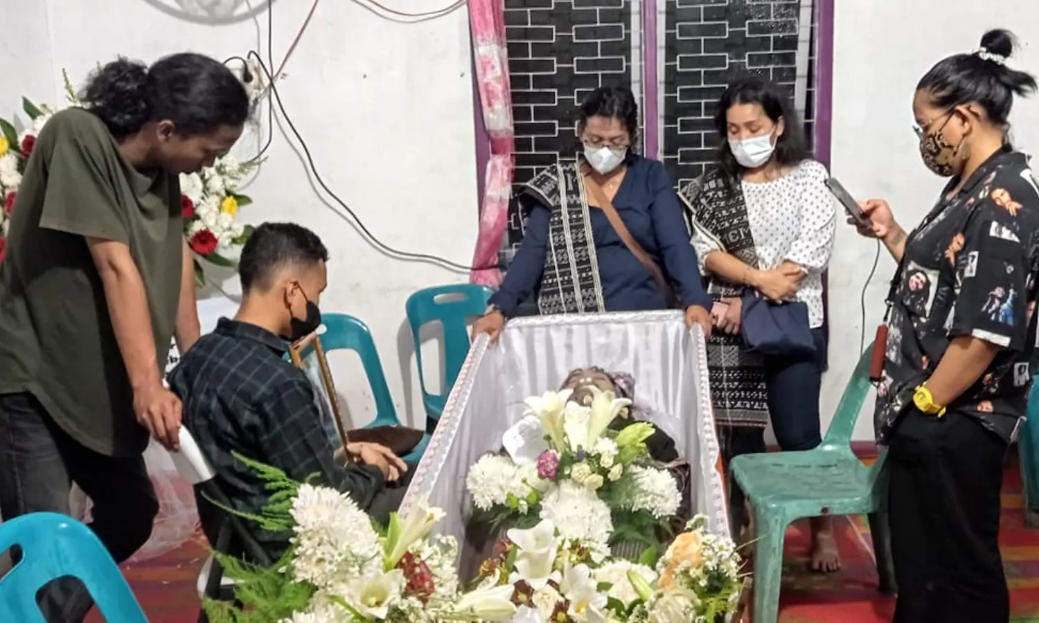 Selanjutnya, jenazah pria berusia 22 tahun itu diboyong ke dalam rumah duka untuk di semayamkan sebelum dimakamkan di pemakaman.