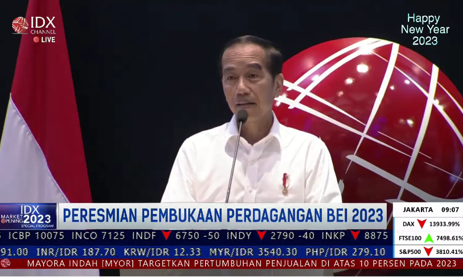 "Kita patut bersyukur indeks di 2022 mengalami kenaikan 4,1 persen dibanding bursa negara negara lain yang mengalami penurunan sangat tajam," ujar Jokowi.