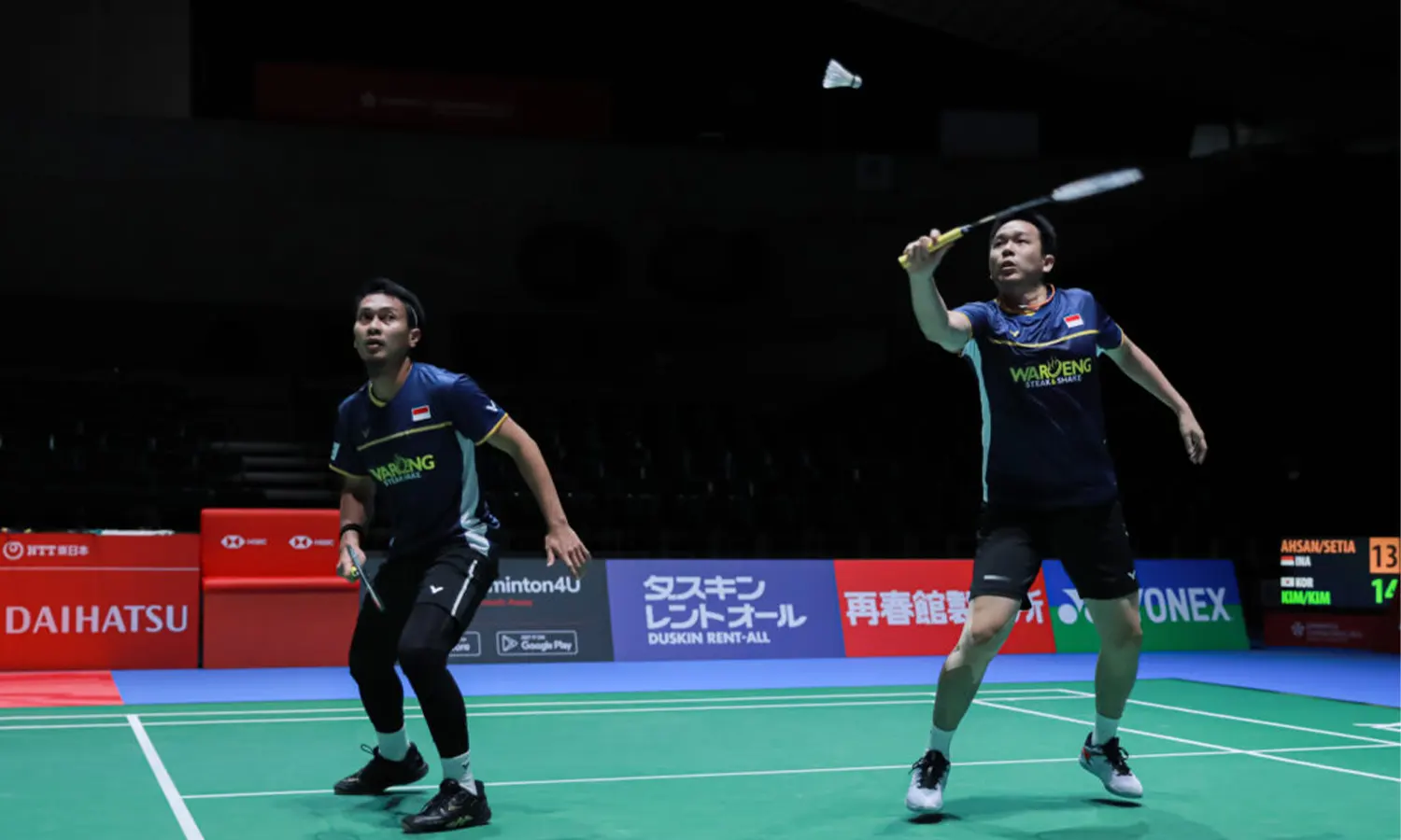 PARBOABOA, Jakarta – Pasangan ganda putra Indonesia, Hendra Setiawan/Mohammad Ahsan berhasil lolos ke babak 16 besar Japan Open 2023 usai mengalahkan Korea Selatan (Korsel).