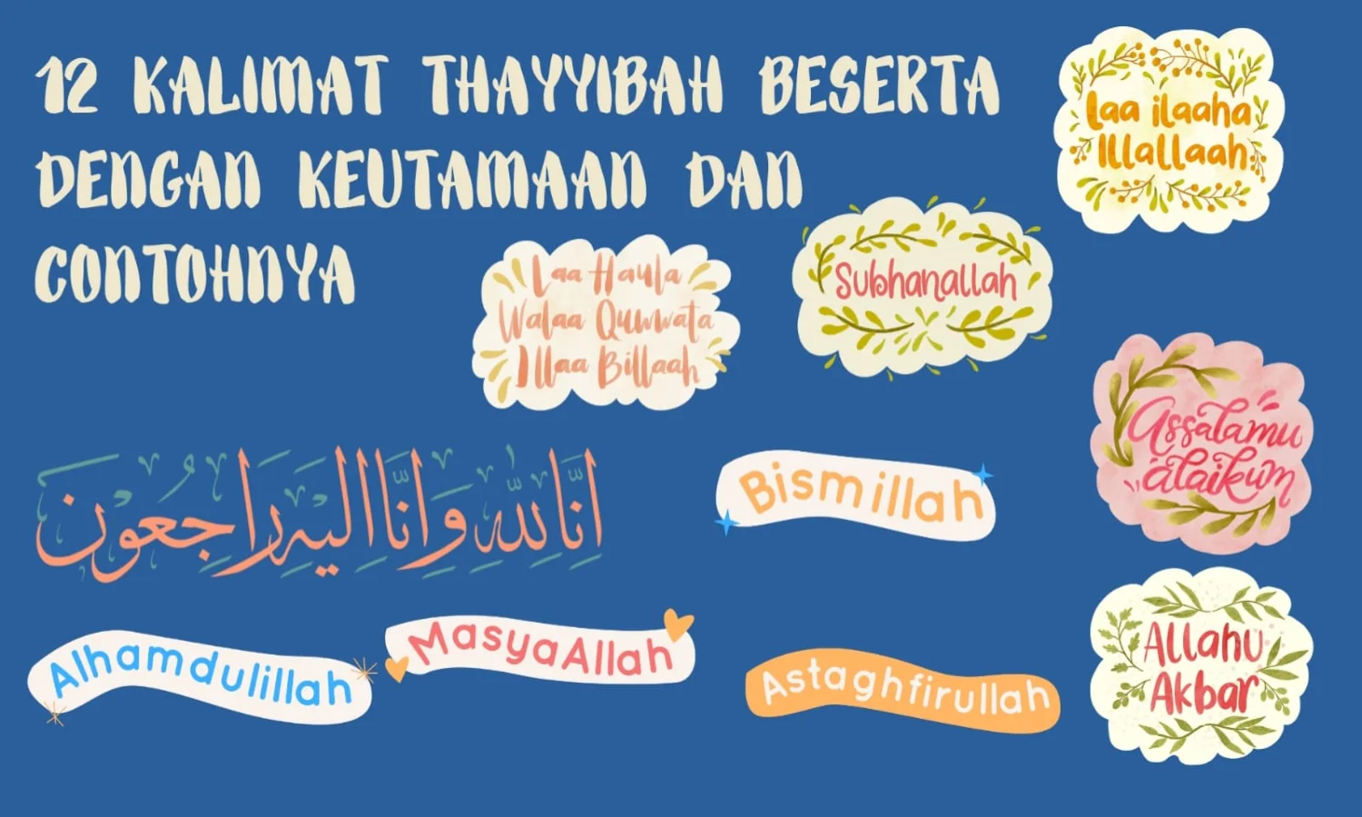 Demikianlah 12 kalimat thayyibah beserta dengan contoh-contohnya yang dapat diterapkan dalam kehidupan sehari-hari. Semoga bermanfaat.