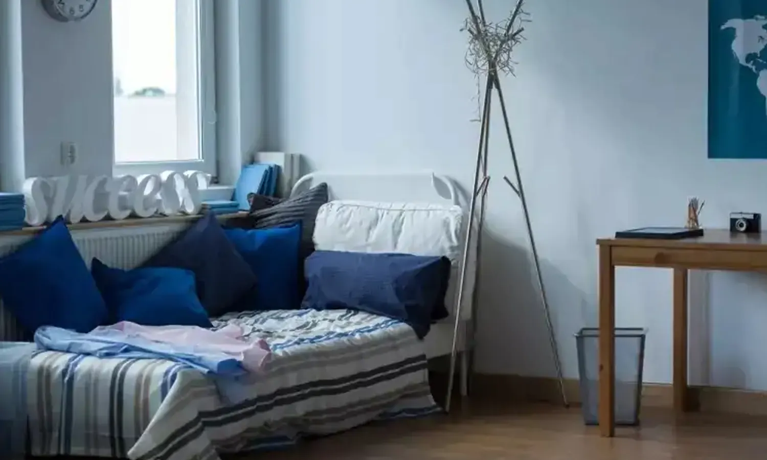 Salah satu cara mengatasinya bisa dengan mengaplikasikan cat dinding berwarna maskulin seperti biru.