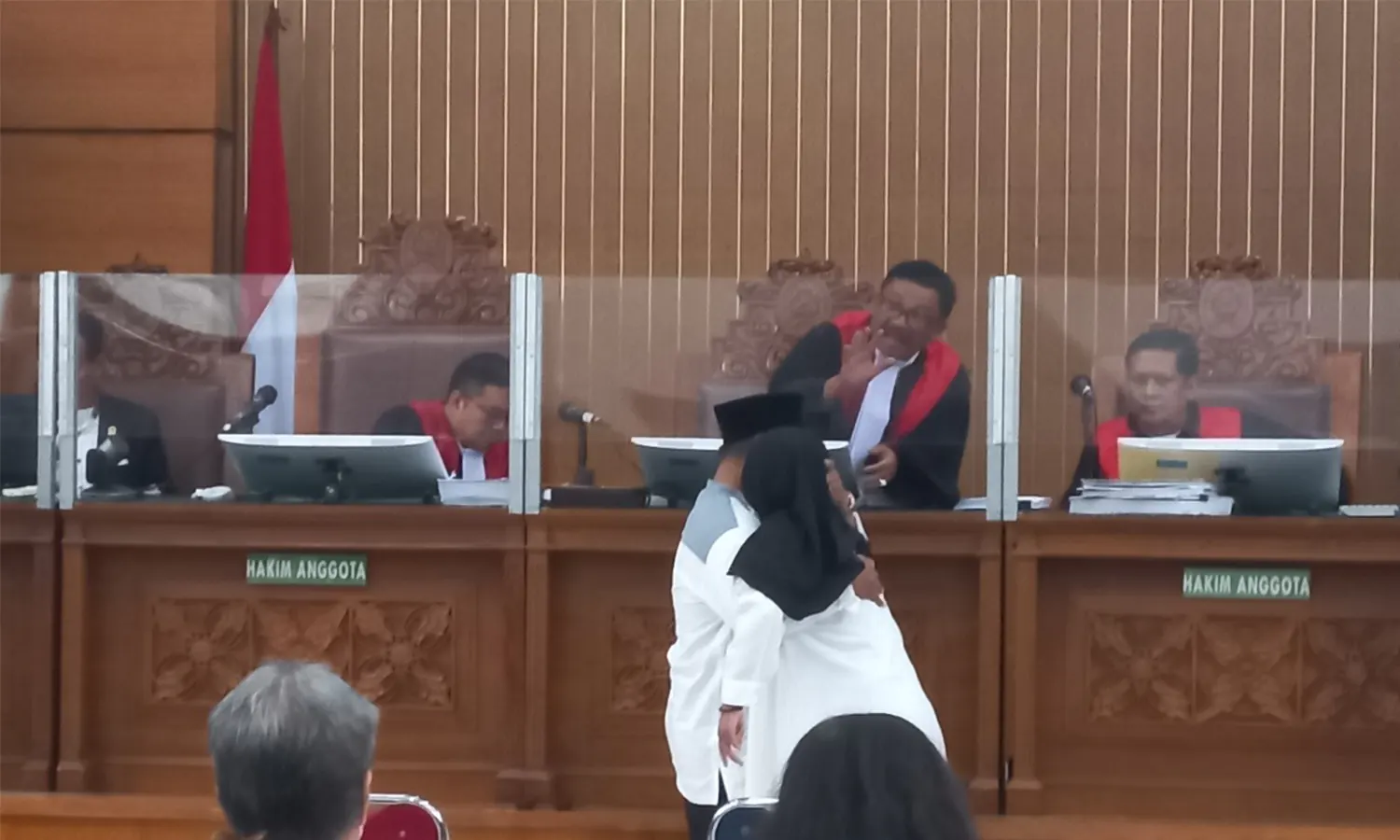 Para terdakwa dijerat Pasal 351 Kitab Undang-Undang Hukum Pidana (KUHP), serta Pasal 43 dan 45 Undang-Undang No 23 Tahun 2004 tentang Penghapusan Kekerasan Dalam Rumah Tangga (KDRT).