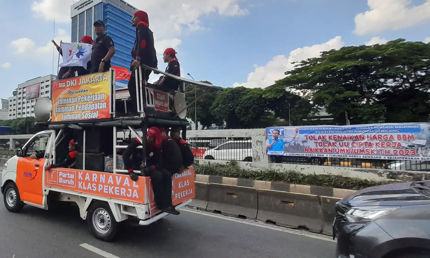Mereka menuntut agar kenaikan upah disesuaikan dengan Peraturan Perintah (PP) nomor 78 tahun 2015 yang sudah tidak berlaku setelah terbitnya Undang Undang Cipta Kerja.