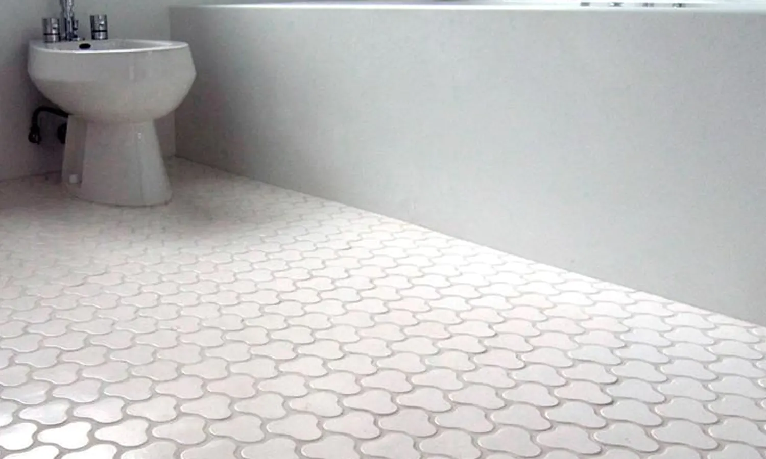 Penny tiles adalah motif keramik lantai kamar mandi yang berbentuk heksagonal dan berukuran kecil.