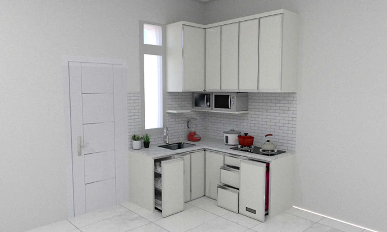 Salah satunya adalah memaksimalkan ruang penyimpanan yang terbatas dengan menggunakan kitchen set minimalis.