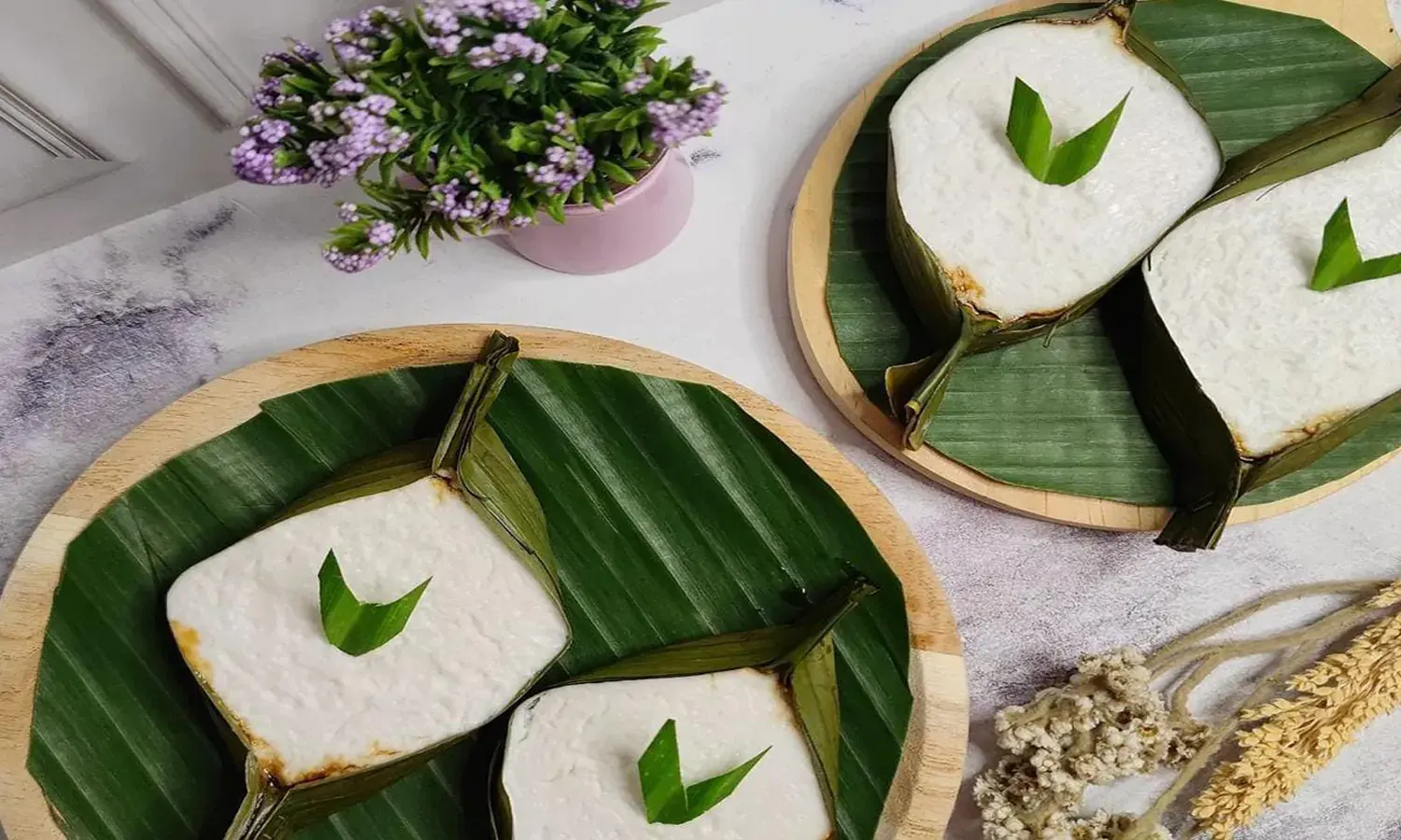 Menggunakan daun pisang yang dibentuk seperti mangkuk sebagai wadahnya, kue ini tidak hanya memanjakan lidah, tetapi juga menyentuh indera penglihatan dengan keindahan visual yang tak terlupakan.