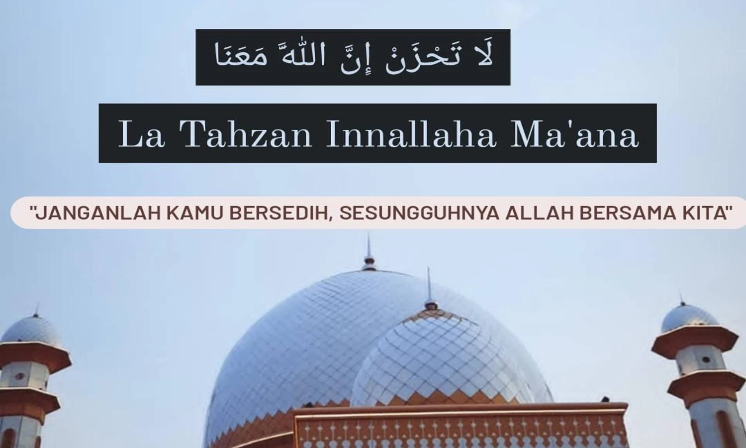 Dalam bahasa Arab mempunyai arti “Janganlah kamu bersedih, Sesungguhnya Allah bersama kita” atau menurut Surat At-Taubah Ayat 40 memiliki arti “Janganlah kamu berduka cita, sesungguhnya Allah beserta kita”