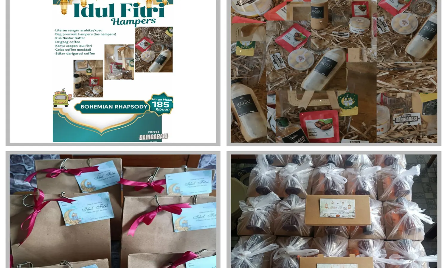 Pesanan hampers juga diterima oleh Dari Garasi Coffee yang berada di Jalan Gagak Hitam nomor 145 Ring Road Medan. Sebagai spesialis arabika gayo, Dari Garasi Coffee menawarkan hampers berisi minuman favorit pelanggan beserta kue Idulfitri.