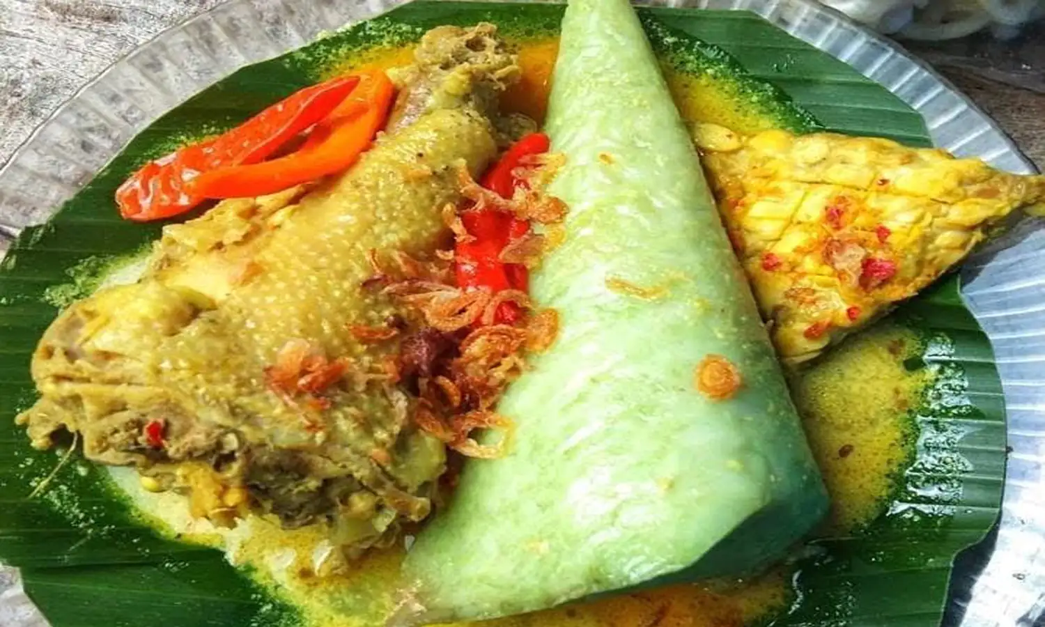 Jika dilihat, tampilannya sangat mirip dengan opor ayam. Namun bedanya, makanan khas Semarang ini disajikan dengan lontong berbentuk segitiga seperti tumpeng.