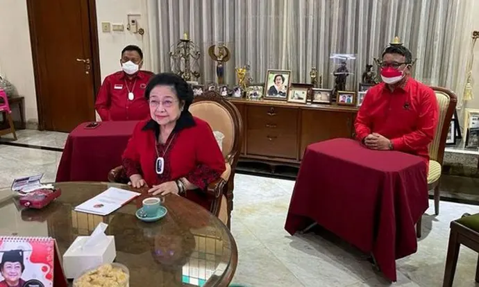 Megawati dari kediamannya, di Jalan Teuku Umar, menghadiri acara Pembukaan Training of Trainer (TOT) Pendidikan Kader Madya PDI-P secara virtual, Dalam acara tersebut, Megawati hadir mengenakan baju berwarna merah. Ia sempat tersenyum saat kehadirannya disambut oleh Hasto.