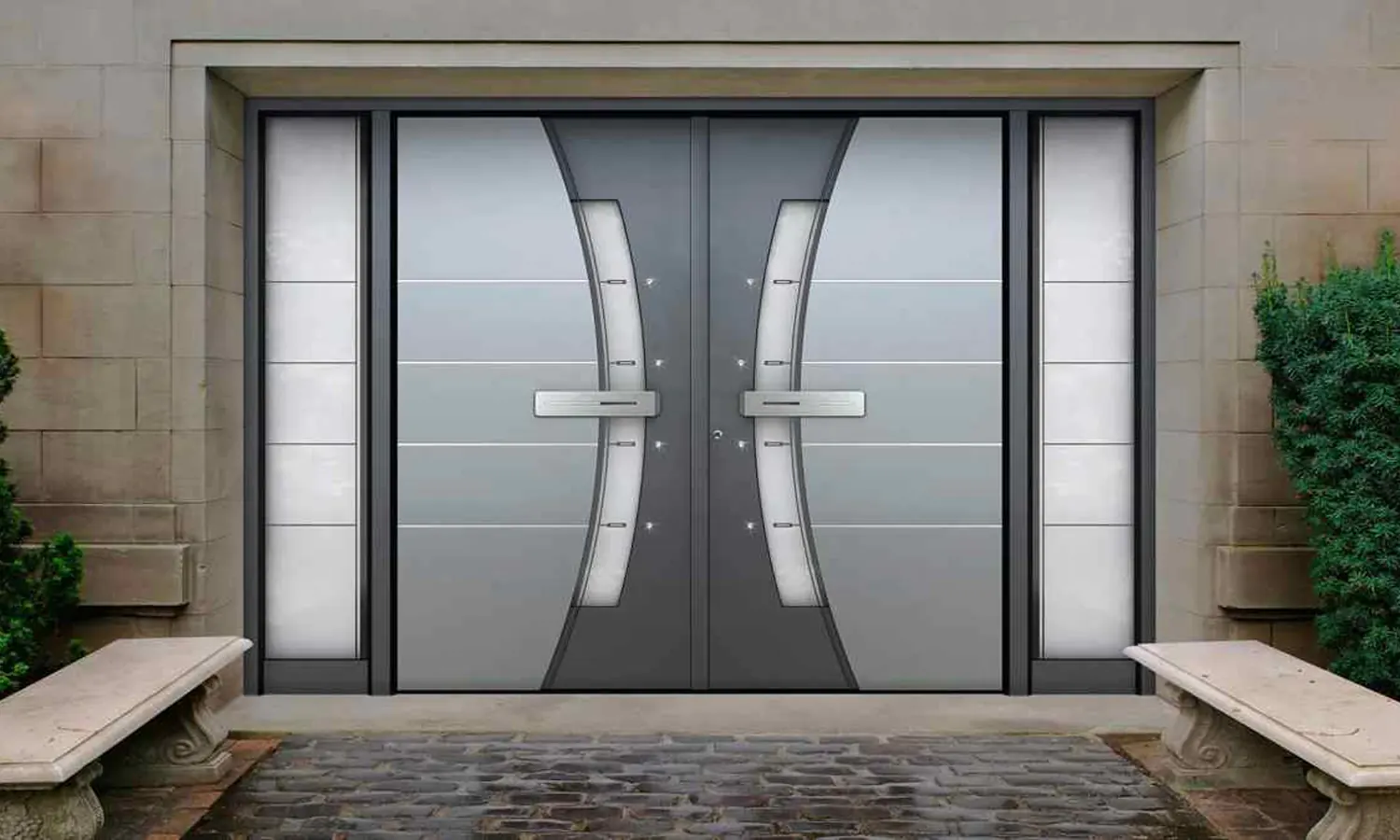 Pintu depan aluminium modern diproduksi untuk memenuhi standar tertinggi di Eropa. Ada lebih dari tujuh puluh desain pintu yang dipesan lebih dahulu, berbagai pilihan pegangan yang ramping, beberapa pilihan kaca, pilihan warna bertekstur, berbagai aksesori modern termasuk pemindai jari bio metrik, tambahan gadget keamanan dan banyak lagi.