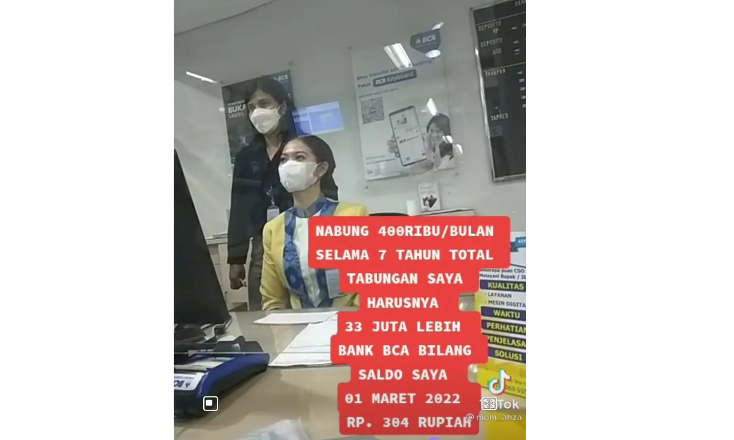 Dalam keterangan video dituliskan jika nasabah tersebut telah menabung Rp 400 ribu selama 7 tahun dengan total uang tabungan sebesar Rp 33 juta, namun saat dicek saldo nasabah tersebut hanya Rp 304 per 1 Maret 2022.
