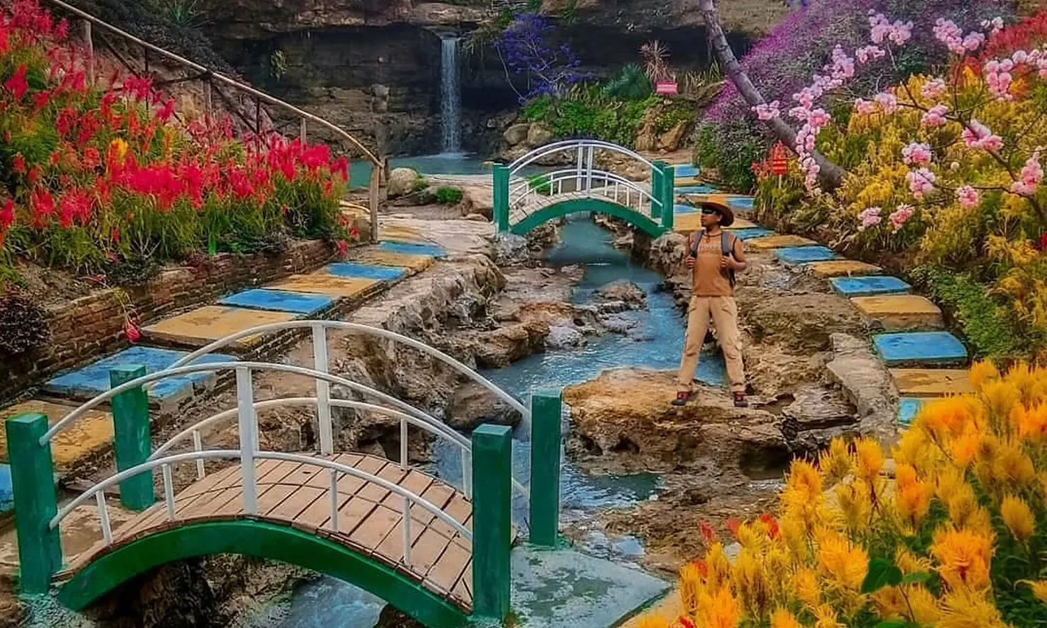 Pemandangan yang alami dan indah ditambah dengan adanya tanaman bunga disekitar tempat wisata membuatnya ramai dijadikan destinasi wisata selfie.