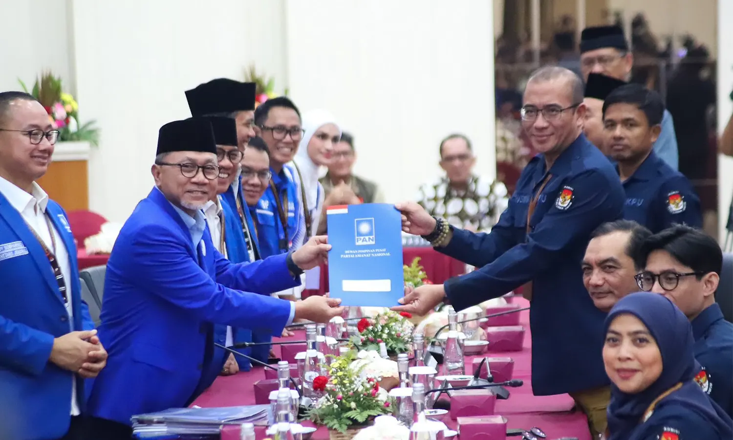 PARBOABOA, Jakarta - Partai Amanat Nasional (PAN) mendaftarkan nama-nama anggota bakal calon legislatif (caleg) Dewan Perwakilan Rakyat (DPR) hari ini ke Kantor Komisi Pemilihan Umum (KPU), Menteng, Jakarta Pusat, Jumat, 12 Mei 2023.