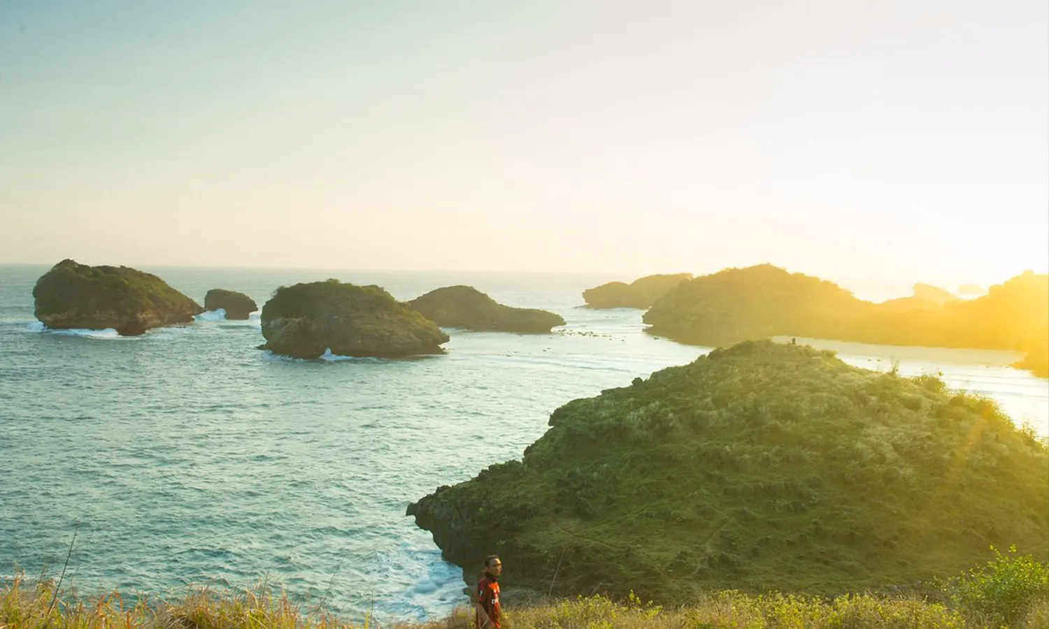 Alasan mengapa Pantai Kasap dijuluki sebagai Raja Ampat mini, yaitu karena wisata Pacitan ini memiliki pemandangan indah dengan bebatuan karang dan pulau-pulau kecil yang ada di tengah-tengah hijau kebiruan warna air lautnya.
