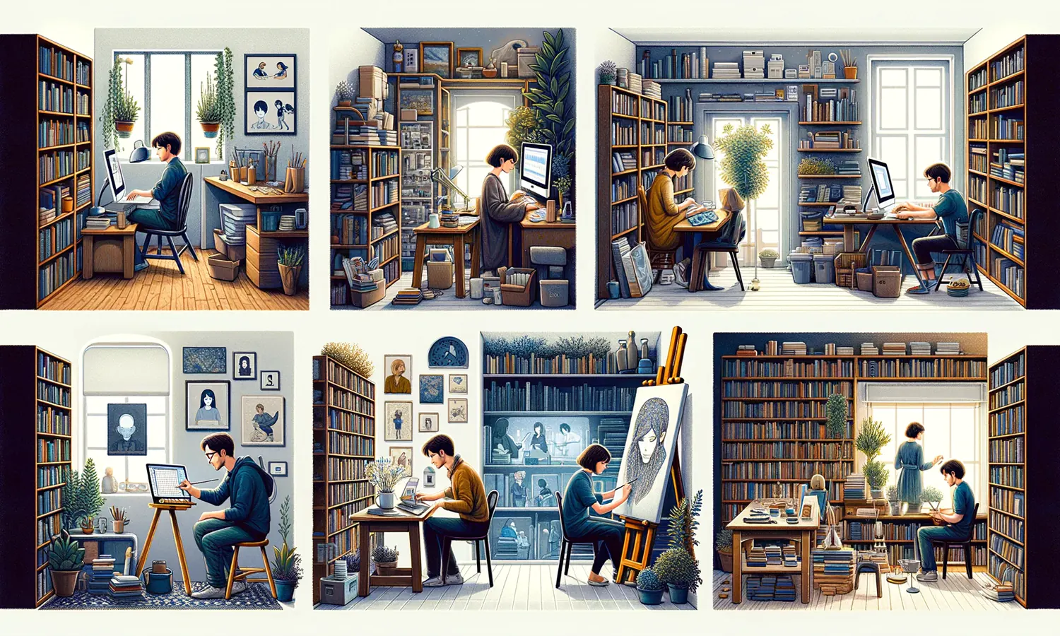 Banyak pekerja seni digital yang sibuk dengan laptop atau komputer di kamarnya. Mereka biasanya bekerja sebagai seorang desainer grafis.