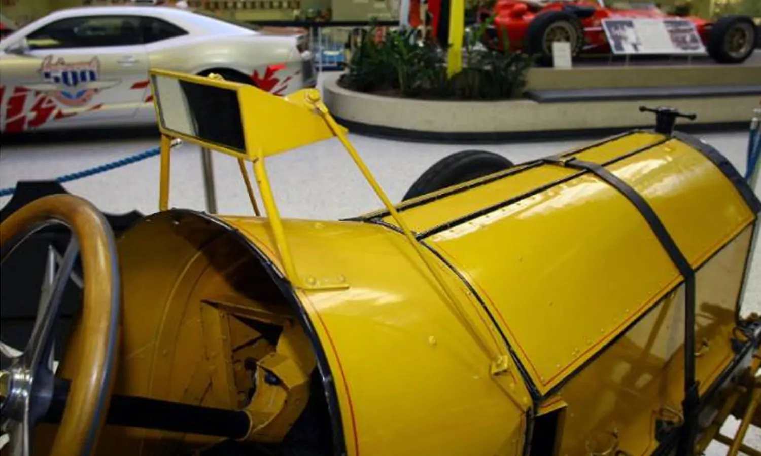 Namun dalam satu seri balapan, Harroun turun balapan seorang diri tanpa mekanik. Dia harus mengamati kondisi mesinnya sendiri disamping harus fokus pada lintasan balap. Untuk memudahkan, Harroun memasang cermin di sisi depan mobilnya agar lebih mudah memantau kondisi mesin yang ada di belakangnya.