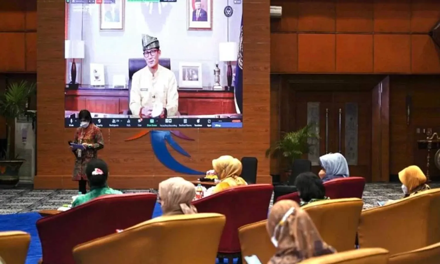 PARBOABOA, Jakarta - Menteri Pariwisata dan Ekonomi Kreatif Sandiaga Salahuddin Uno menghadiri acara webinar entrepreneurship dengan tema "Peningkatan Pemberdayaan Perempuan Dalam Kewirausahaan", dalam rangka memperingati Hari Ibu tahun 2021, di Balairung Soesilo Soedarman, Gedung Sapta Pesona.
