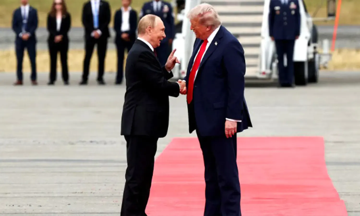 Pertemuan tersebut sarat simbolisme. Media pemerintah Rusia menyoroti penyambutan resmi, fly-over militer, hingga momen ketika Trump menjemput Putin dan mengajaknya masuk ke limusin kepresidenan AS, The Beast.