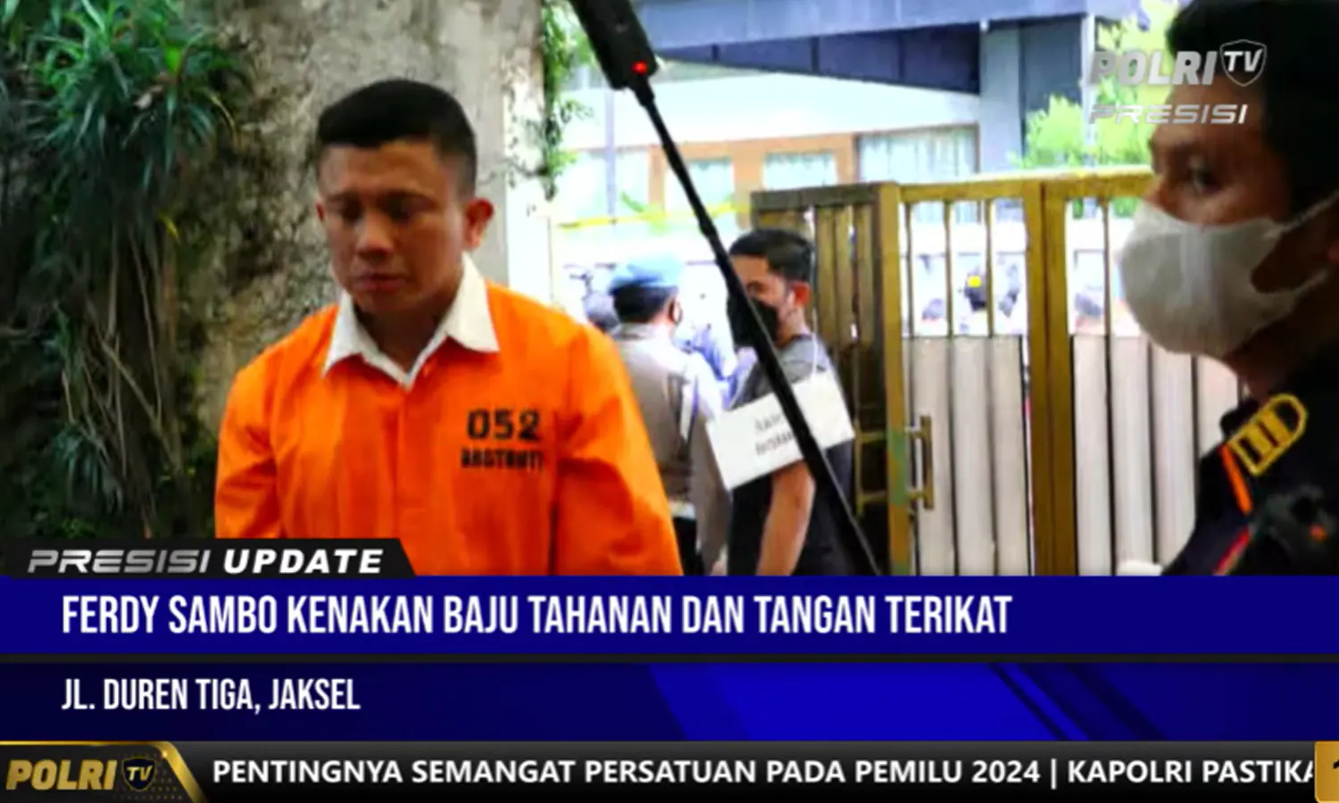 Dengan menggunakan baju tahanan, Sambo hadir bersama tiga tersangka lainnya yakni Bharada E, Bripka Ricky Rizal, dan Kuat Maruf. Sementara Putri Candrawathi tampil modis menggunakan pakaian serba putih.
