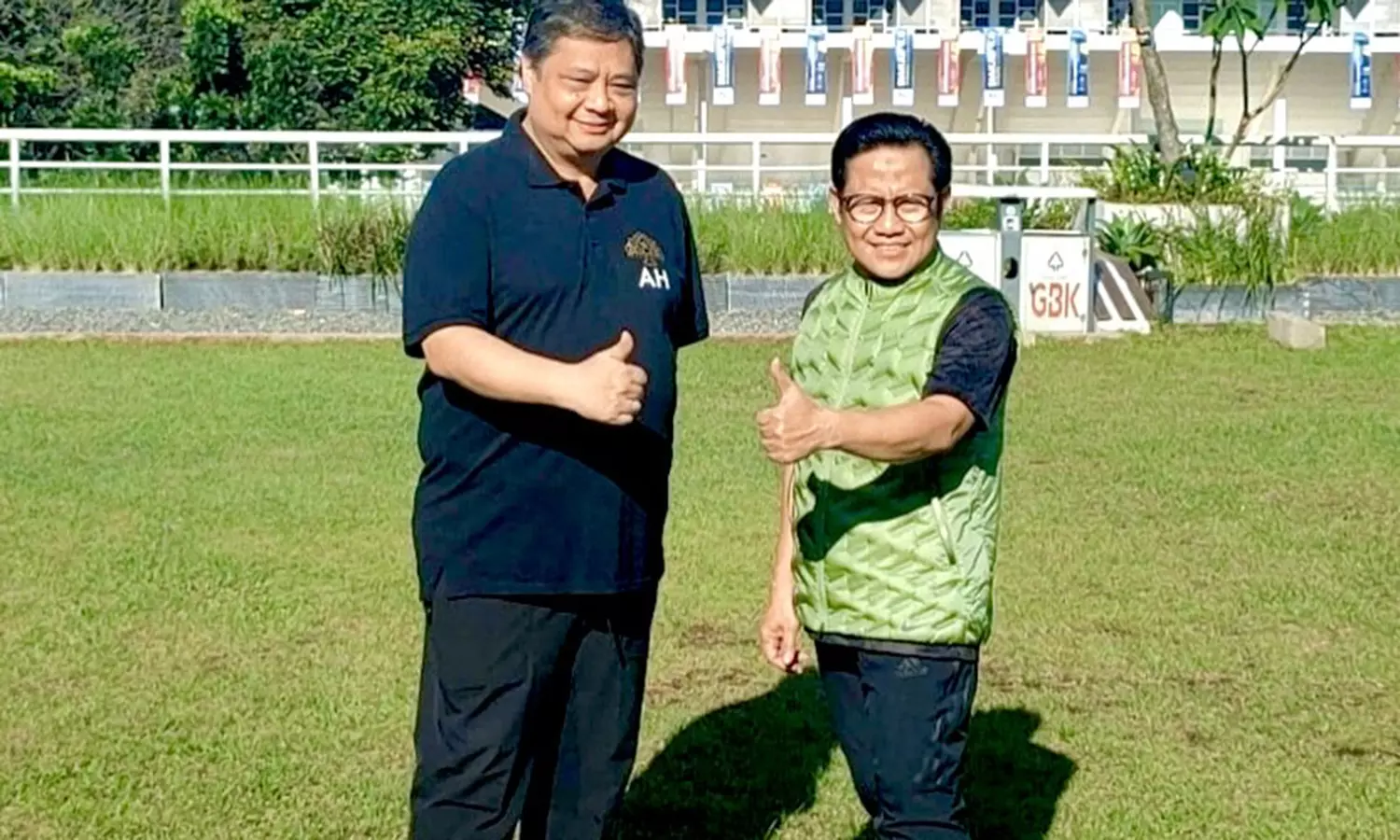 PARBOABOA Jakarta - Ketua Umum Partai Kebangkitan Bangsa (PKB) Muhaimin Iskandar melakukan pertemuan dengan Ketua Umum Partai Golkar Airlangga Hartarto di Istora Senayan, Jakarta Pusat, Jumat (10/02/2023). Agenda khusus yang dibahas berhubungan pemilihan umum (Pemilu) 2024 dengan santai namun serius.