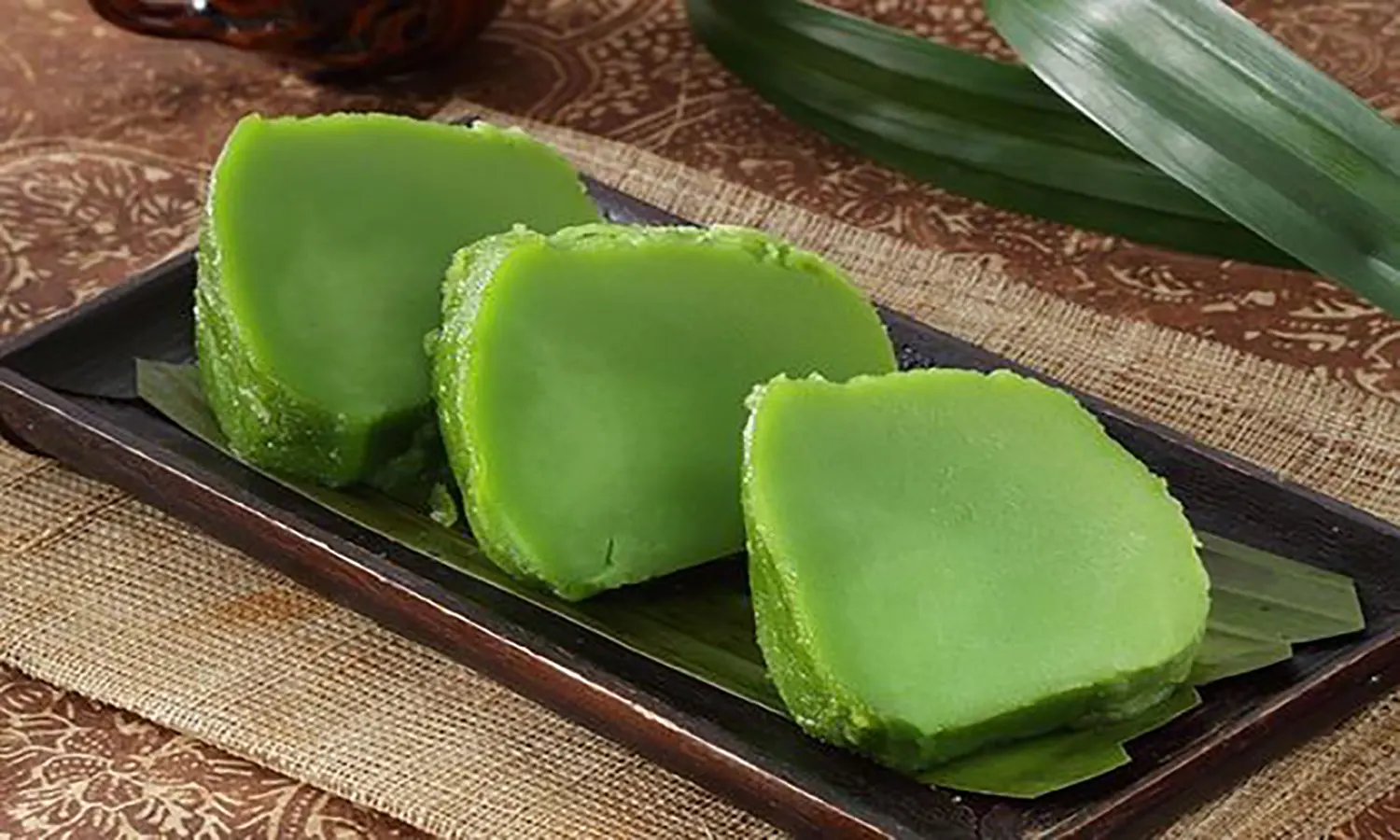 - Rebus campuran santan dan daun suji, tambahkan agar-agar dan vanili bubuk, aduk hingga rata. Ketika sudah mendidih, tambahkan mentega, matikan api. Hilangkan uap panas dan biarkan dingin.