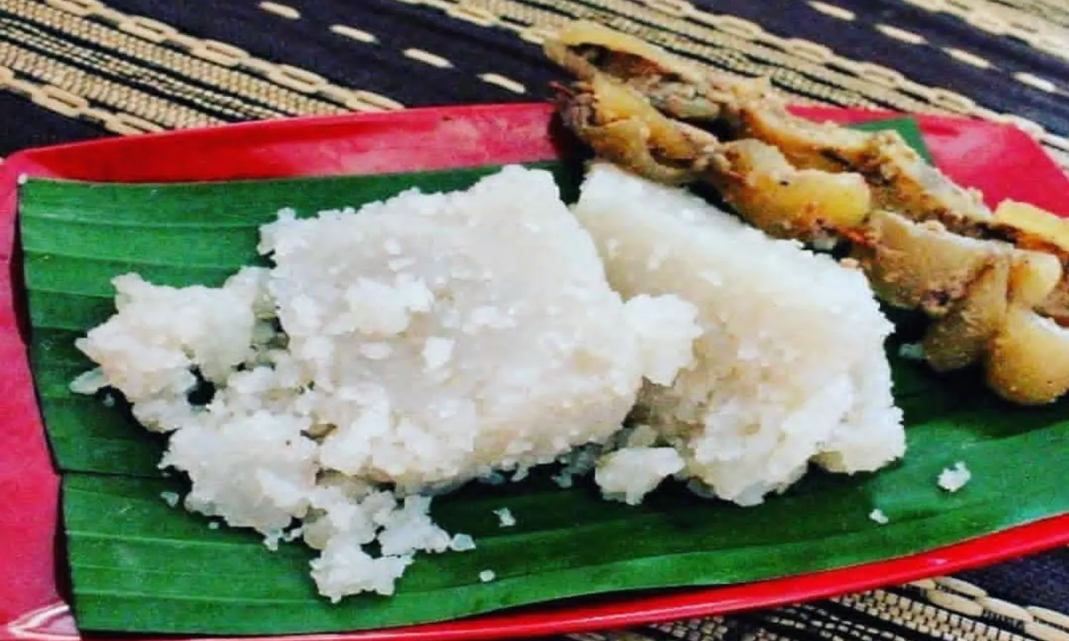 - Kukus tepung aren yang sudah disangrai hingga matang, lalu tuangkan ke dalam sebuah wadah. Aduk dengan sisir.