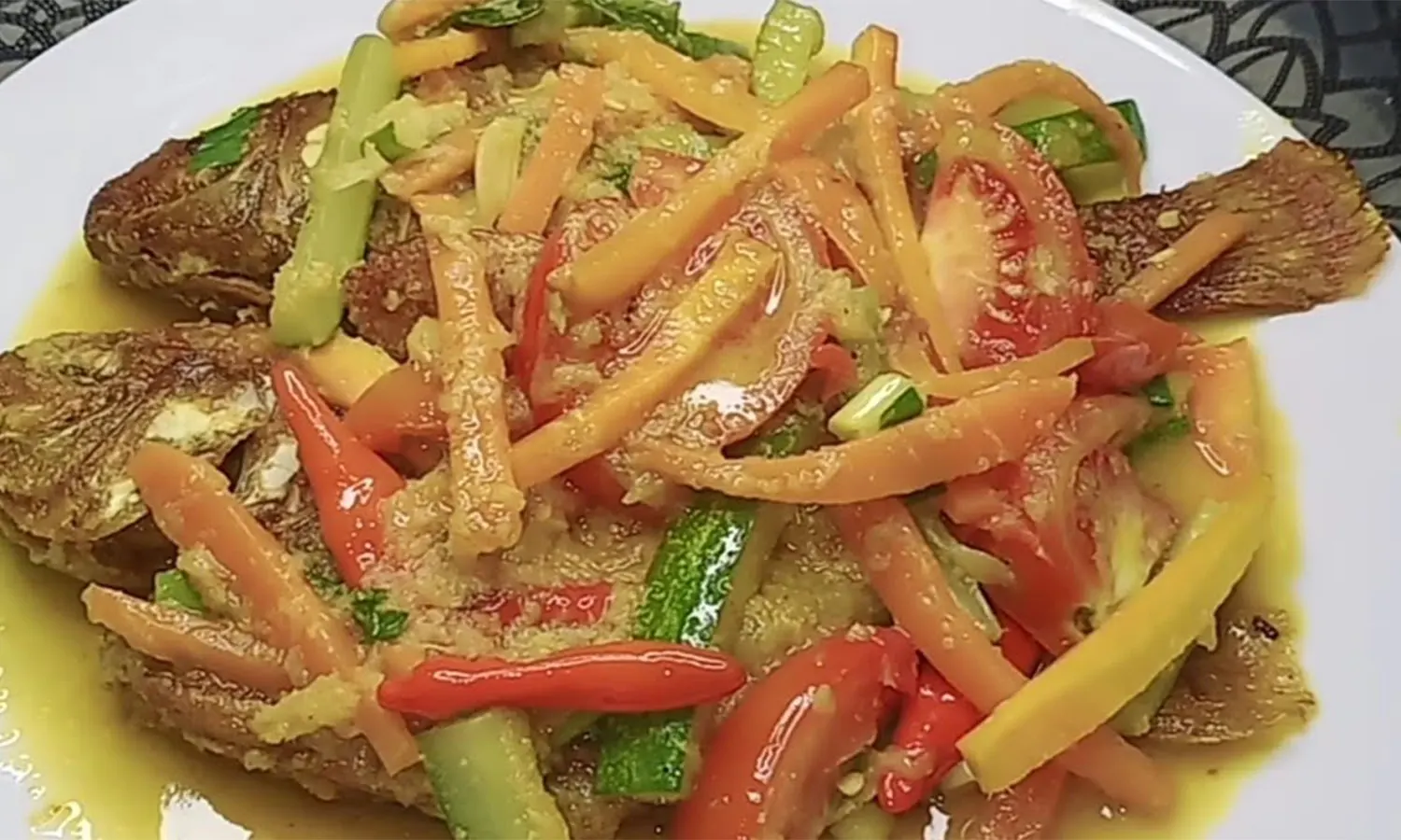 - Bersihkan ikan lalu goreng hingga matang, sisihkan