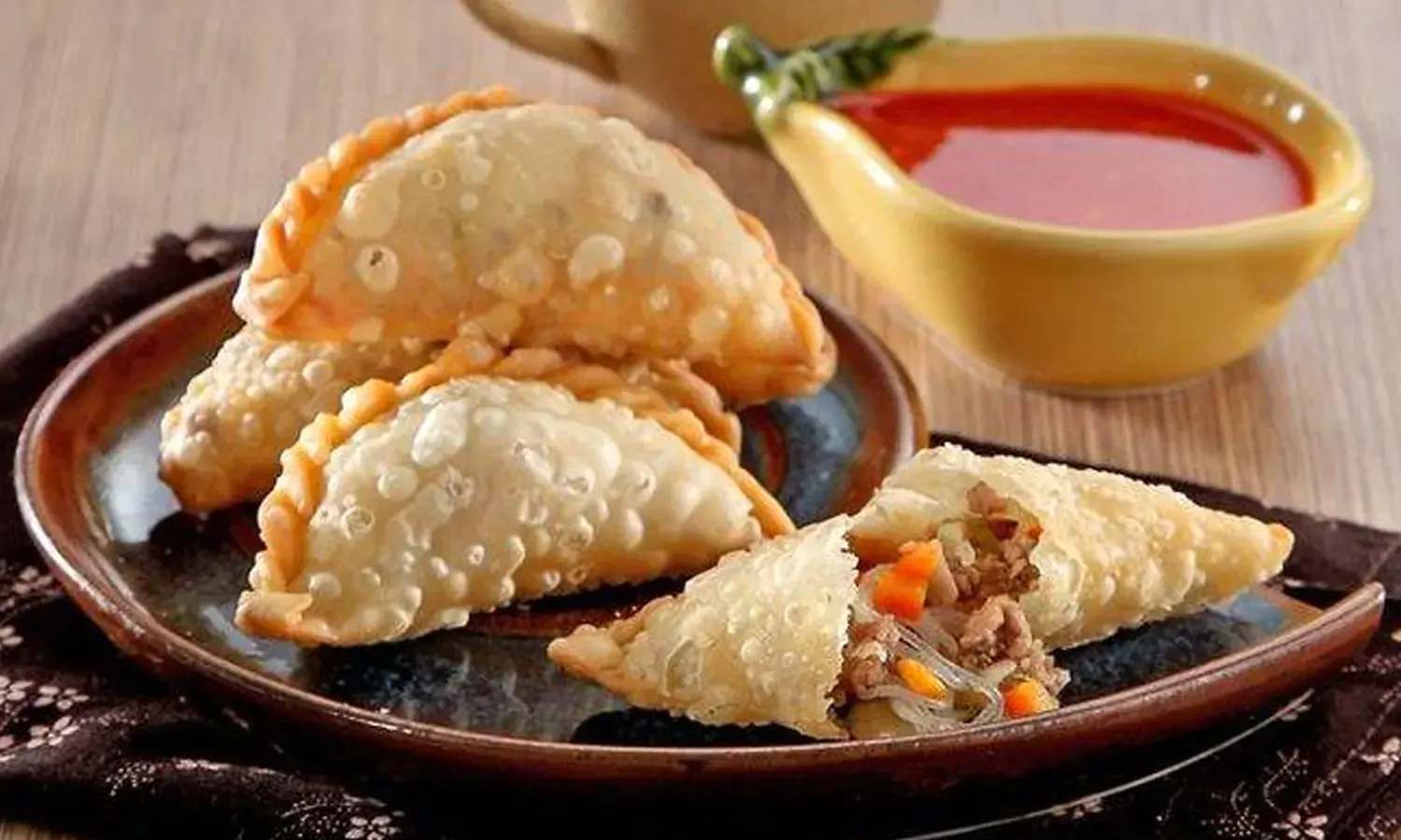 - Ambil sejumput adonan daging sapi yang telah dimasak dan letakkan di tengah adonan kulit. Lipat adonan kulit menjadi setengah lingkaran dan rapatkan pinggirannya. Ulangi proses ini hingga semua adonan habis.