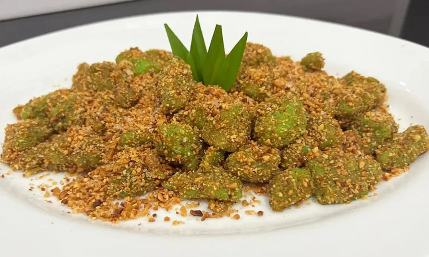 - Untuk penyajian, baluri adonan dengan kacang yang sudah disangrai.