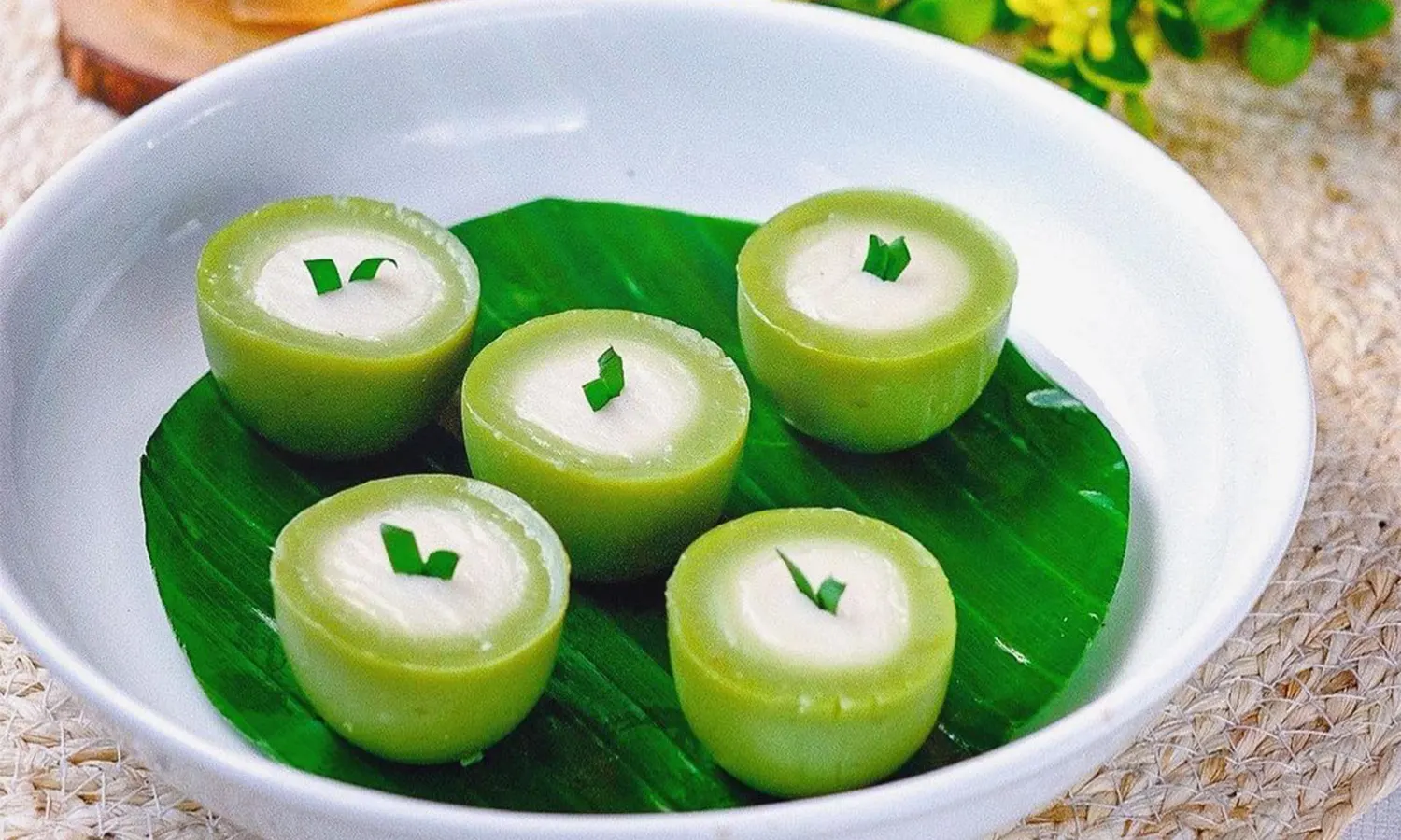 - Siapkan panci dan masak santan kental (250 ml), gula pasir (40 gram), maizena, jus pandan, dan garam hingga mengental. Angkat dan biarkan dingin. Setelah itu, campurkan ke dalam bahan sebelumnya dan kocok kembali hingga tercampur rata.