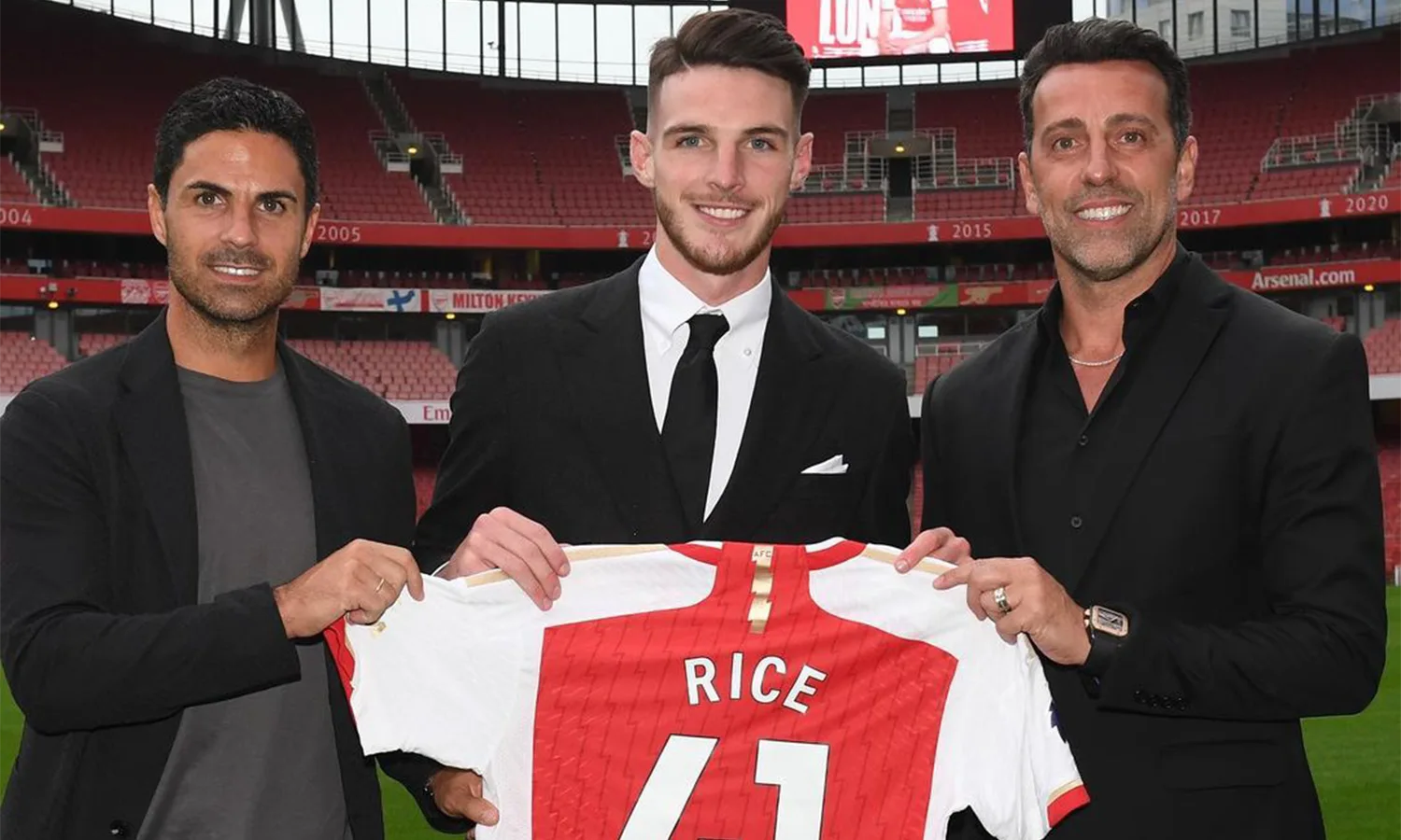 Menurut laporan yang beredar, Arsenal harus membayar sekitar 100 juta pounds ditambah dengan tambahan senilai lima juta pounds untuk mengamankan jasa Rice.