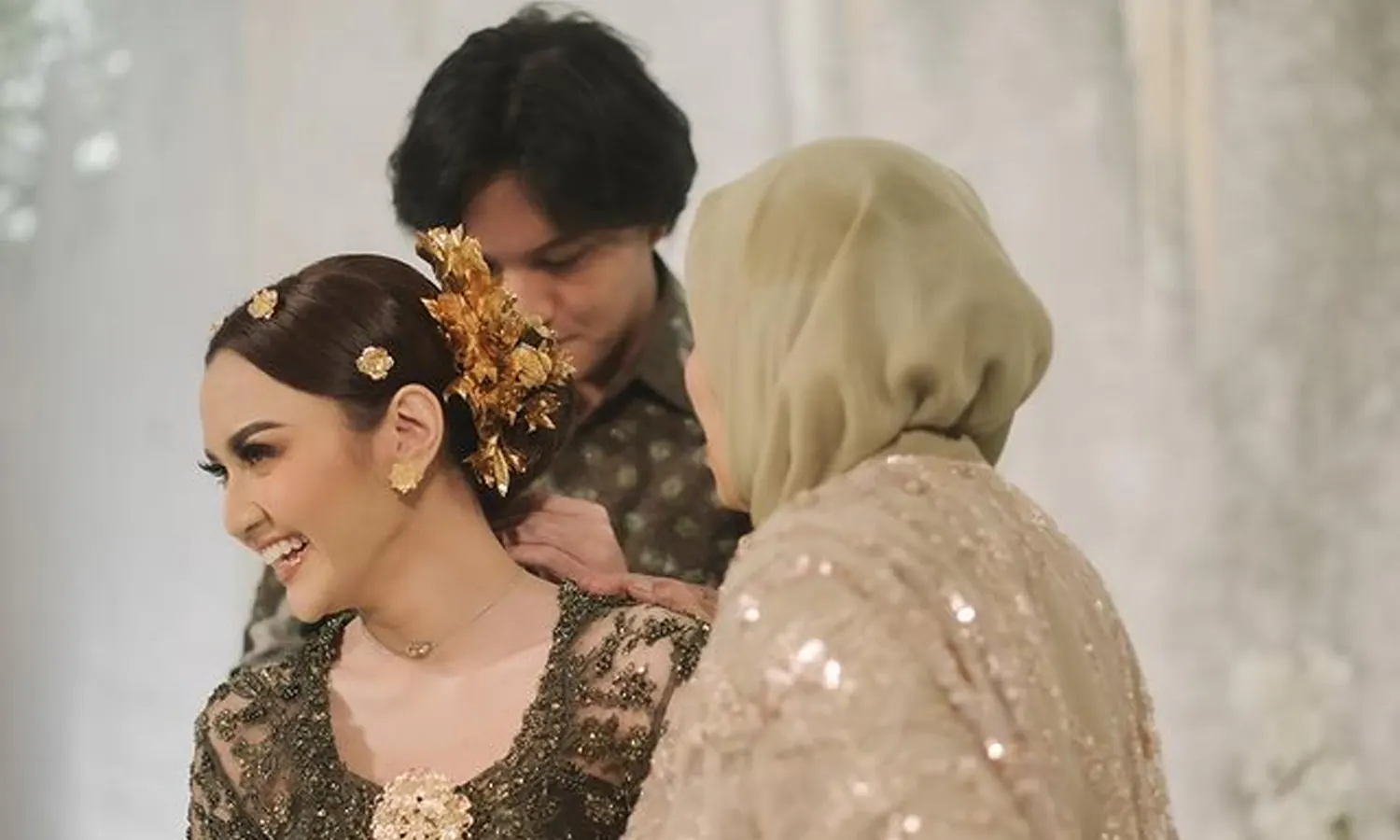 Dilihat dari unggahan akun instagram lain, @thebridestory, Iky juga memasangkan kalung di leher Mahalini sebagai seserahan dalam acara tersebut