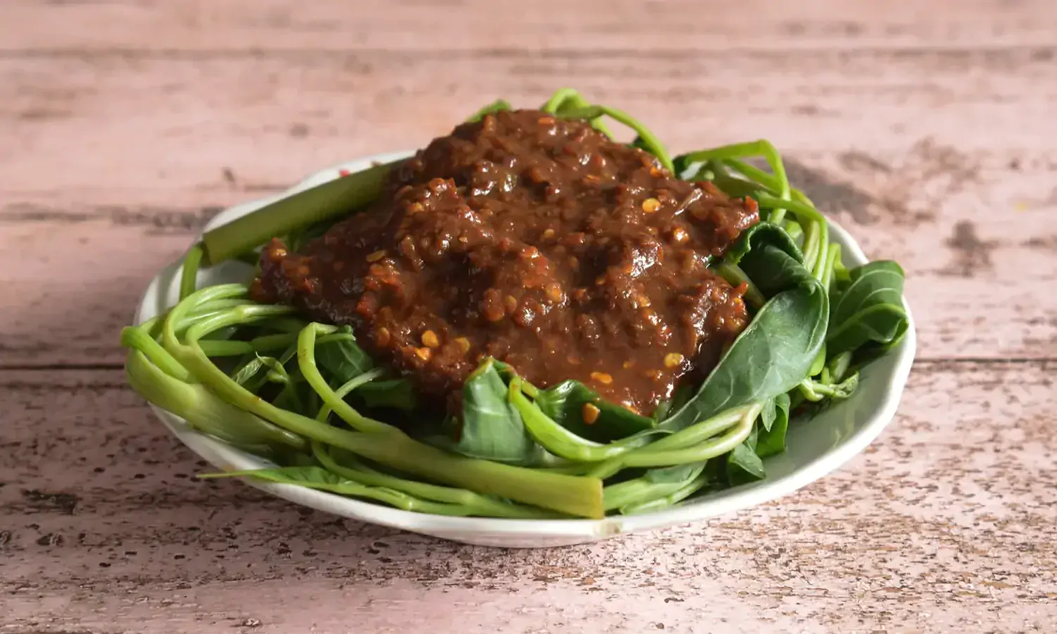 - Susun kangkung di atas piring saji, lalu siram dengan sambal yang telah disiapkan. Rujak kangkung khas Betawi siap untuk disantap.