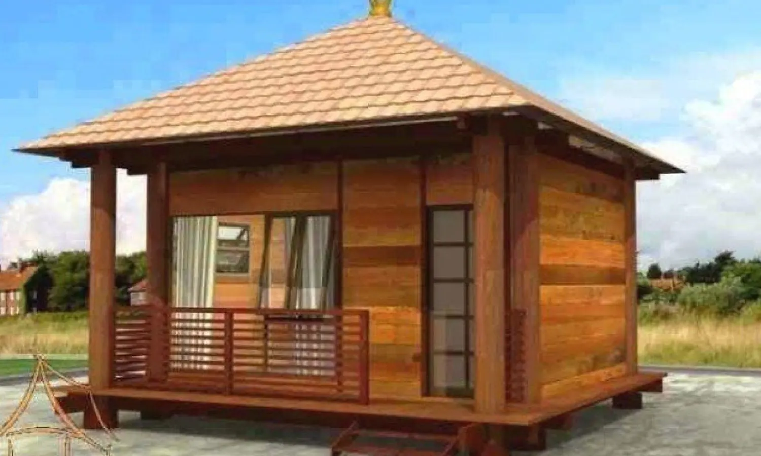 Terbuat dari gabungan kayu olahan dan kayu mentah seperti multiplek, rumah kayu juga bisa dibuat dengan luasan sempit.