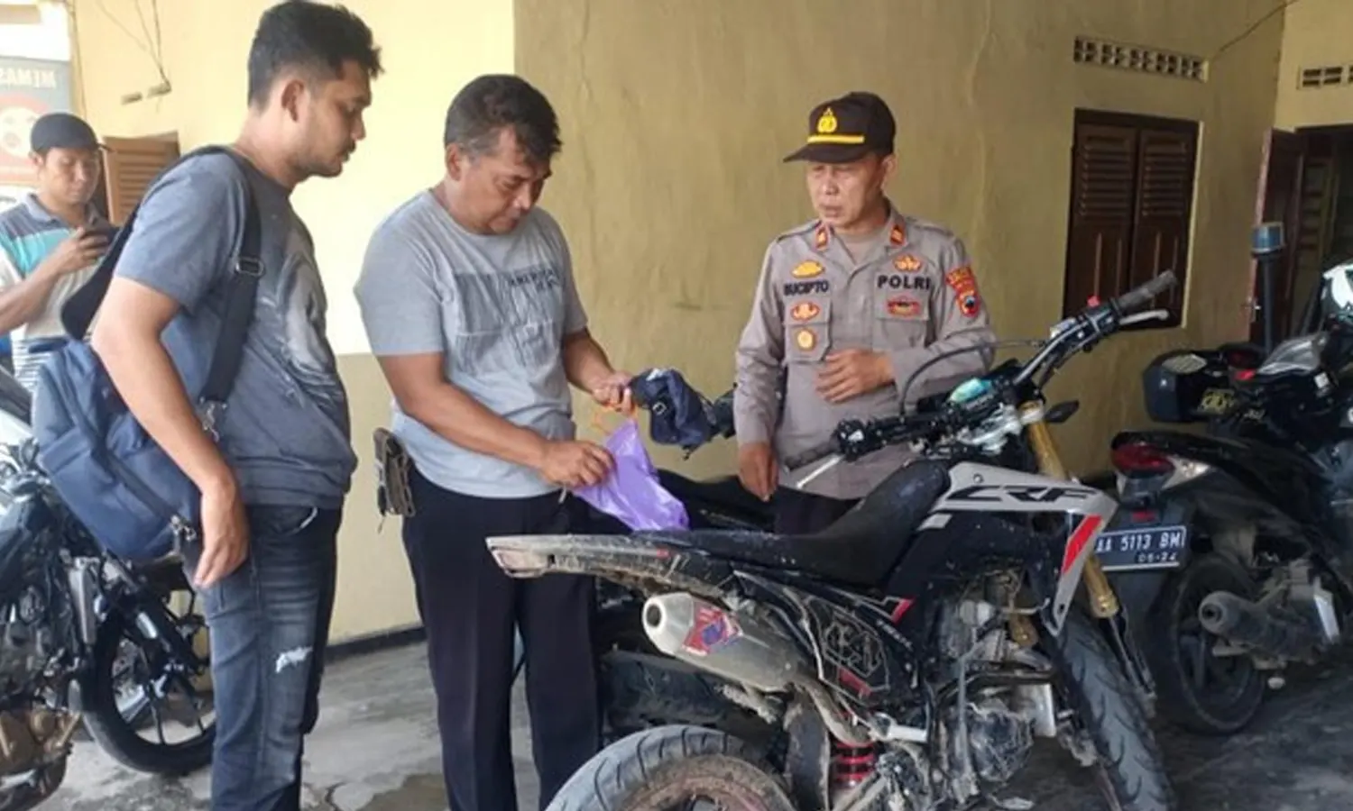 Saat ini polisi sudah mengamankan barang bukti berupa kertas pembungkus pisau warna putih yang diisolasi warna hitam dan sepeda motor yang sempat digunakan pelaku untuk melarikan diri.