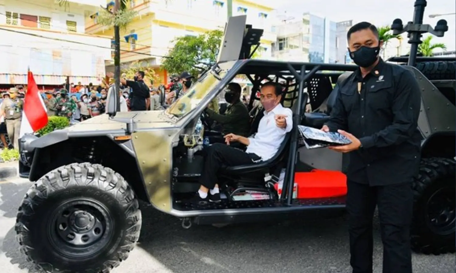 Kendaraan yang masuk kedalam kategori mobil tempur itu dipilih Jokowi untuk memperkenalkan mobil taktis asli buatan Indonesia itu kepada masyarakat.