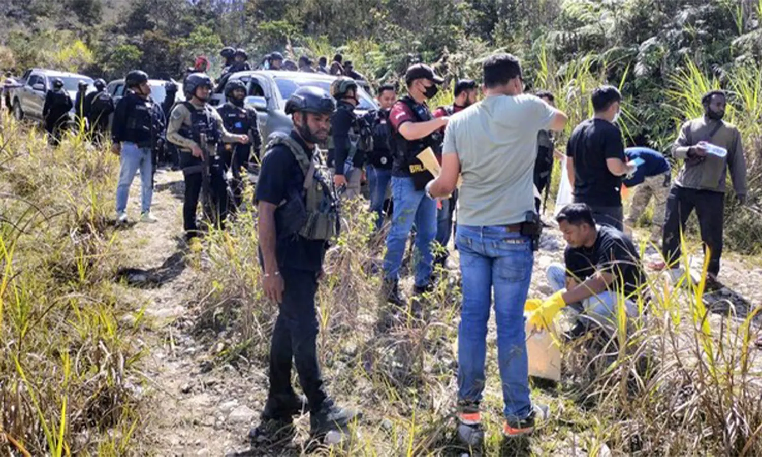 Kasatgas Humas Damai Cartenz, AKBP Bayu Suseno, menduga jika pelaku pembunuhan berjumlah 7 orang, di antaranya adalah PM, AW, RK, KW, JW, DW, dan K.