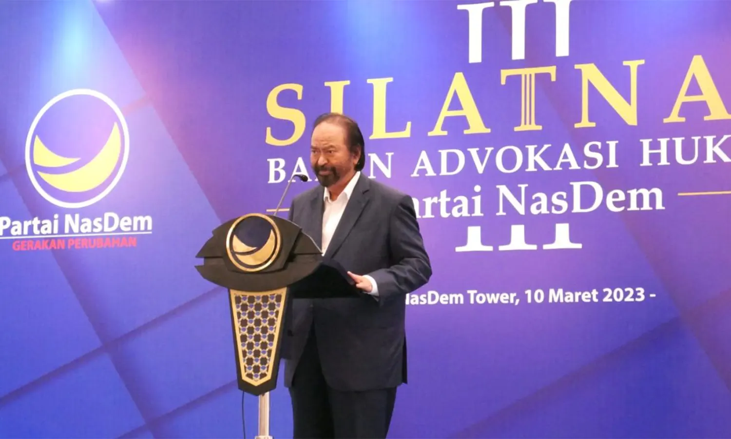 "Walaupun ada di negeri kita Mahkamah Konstitusi, Mahkamah Agung, yang berperan sebagai payung yang paling di atas untuk menjaga posisi peran daripada peradilan, mulai dari tingkat bawah, menengah, tinggi, dan seterusnya, tapi kita berhadapan dengan realita yang ada," kata Surya dalam pidatonya di acara Silatnas Badan Advokasi Hukum DPP Nasdem, di Nasdem Tower, Jakarta, Jumat (10/3/2023).