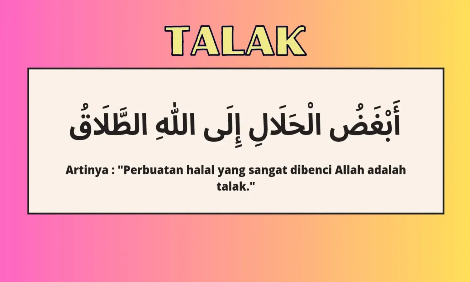 Artinya: "Perbuatan halal yang sangat dibenci Allah adalah talak." (HR Abu Dawud dan Ibnu Majah)