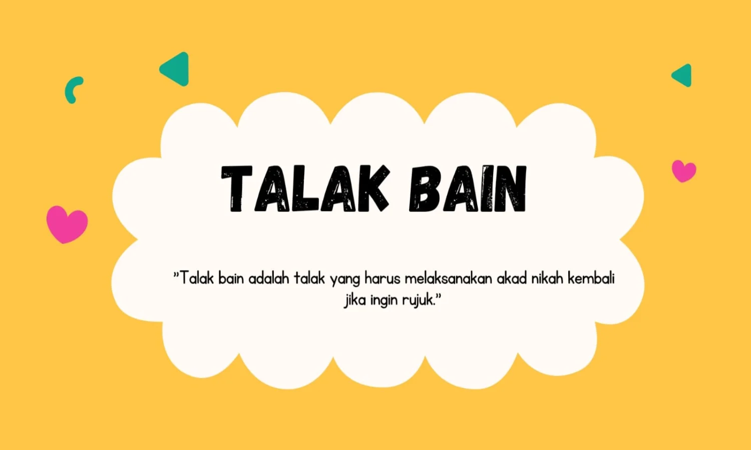 Talak bain adalah istilah dalam hukum Islam yang mengacu pada talak yang bersifat tegas dan permanen. Ketika suami mengucapkan talak bain kepada istrinya, perceraian dianggap sah dan ikatan pernikahan dihentikan secara definitif.