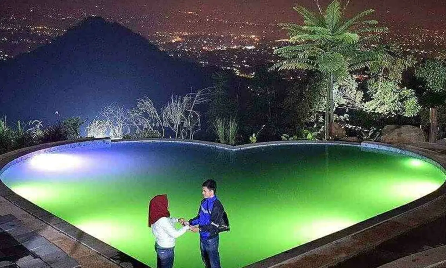 Selain itu, terdapat pula kolam kecil berbentuk hati di tepi lainnya. Kamu bisa berenang sambil menikmati keindahan alam dan kesejukan udara. Atau berfoto romantis dengan kekasih.