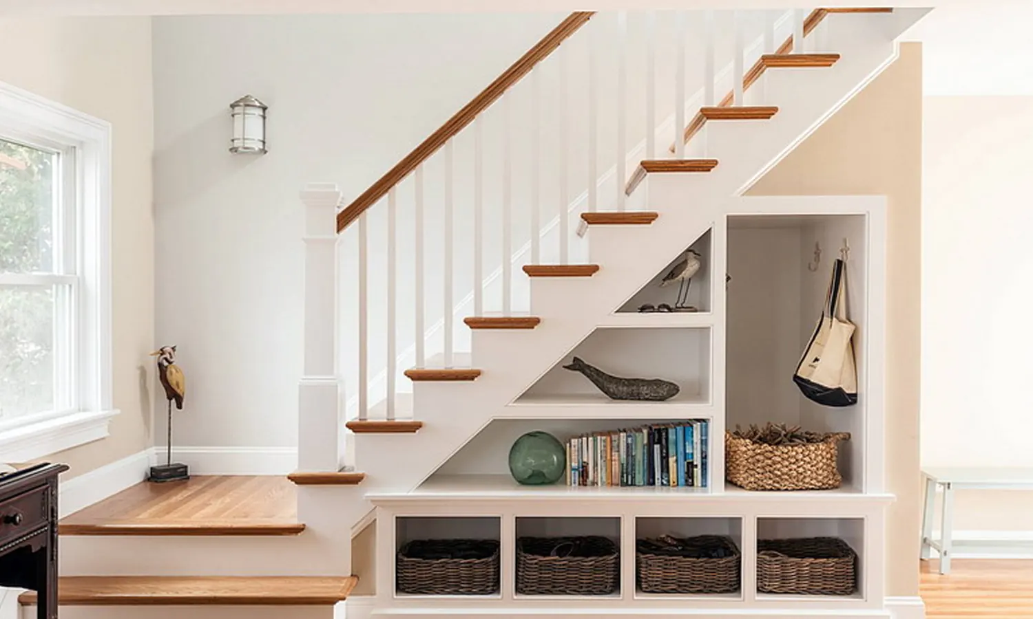 Saat merancang tangga minimalis untuk rumah kecil, kamu harus memaksimalkan sudut ruangan dan juga bagian bawah tangga.