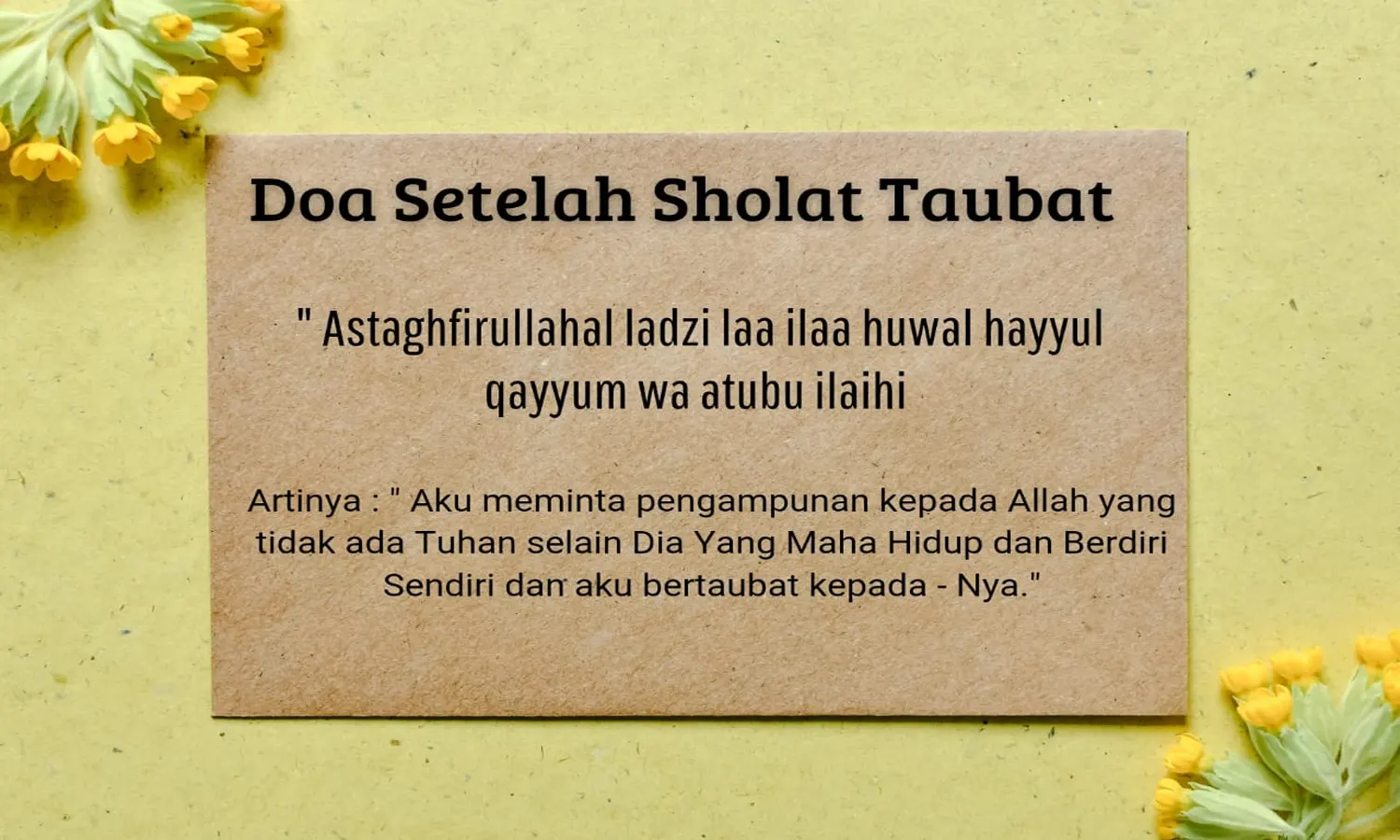 Artinya: "Aku meminta pengampunan kepada Allah yang tidak ada Tuhan selain Dia Yang Maha Hidup dan Berdiri Sendiri dan aku bertaubat kepada-Nya."