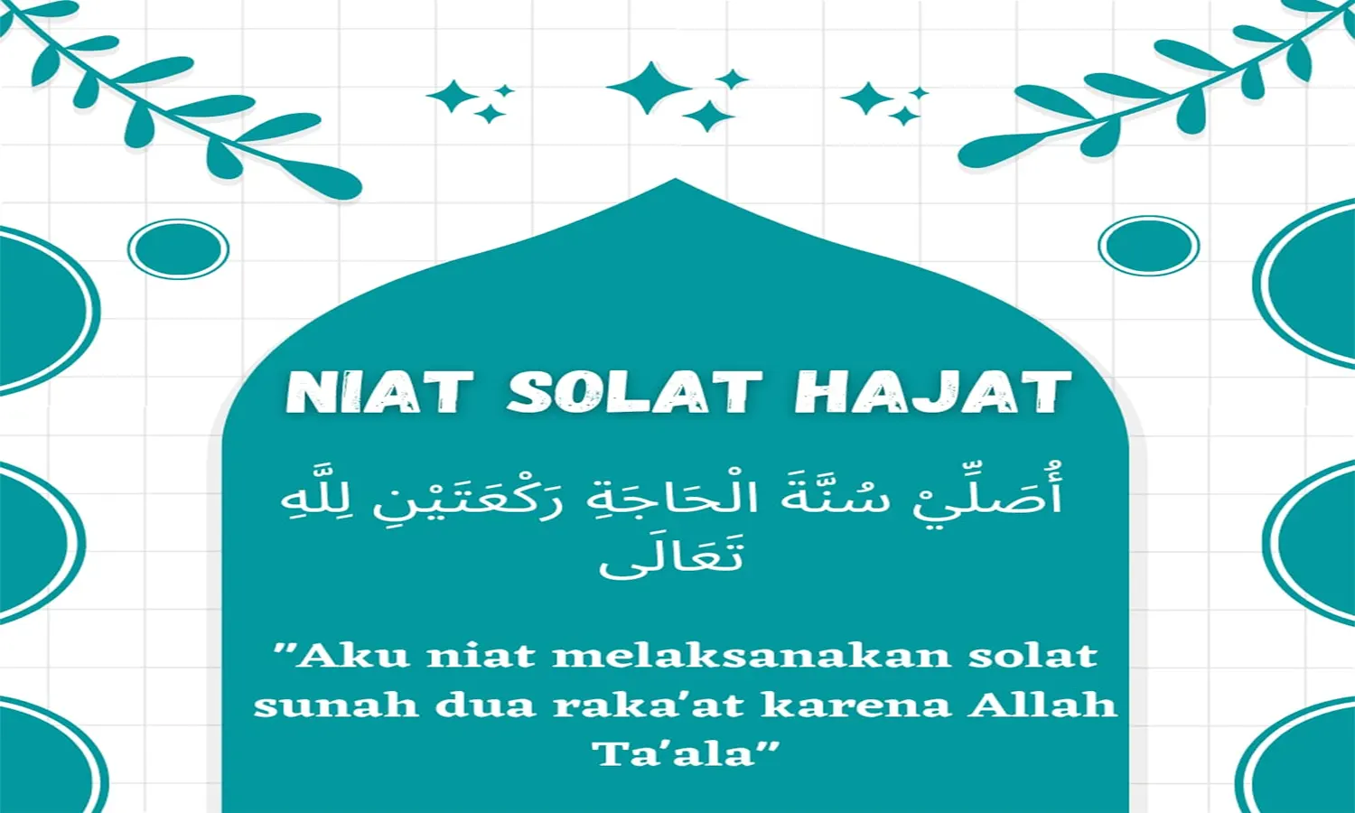 Artinya: “Aku niat melaksanakan solat sunah hajat dua rakaat karena Allah Ta’ala.”