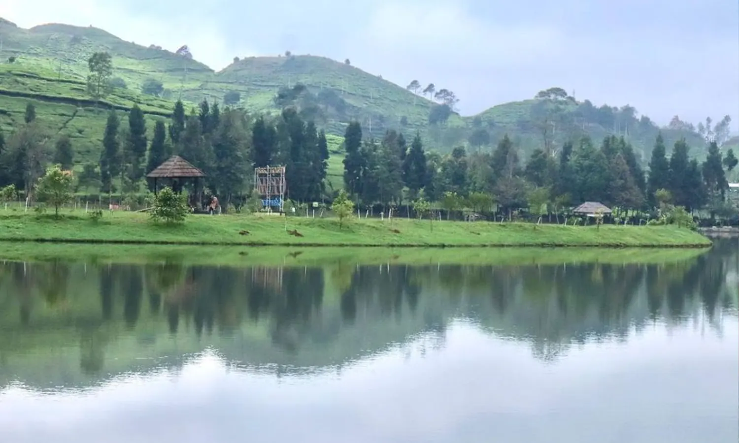 Telaga Saat Puncak menjadi salah satu destinasi sekaligus spot foto yang memberikan konsep alam dengan perpaduan telaga, kebun teh dan hutan dalam satu bingkai.