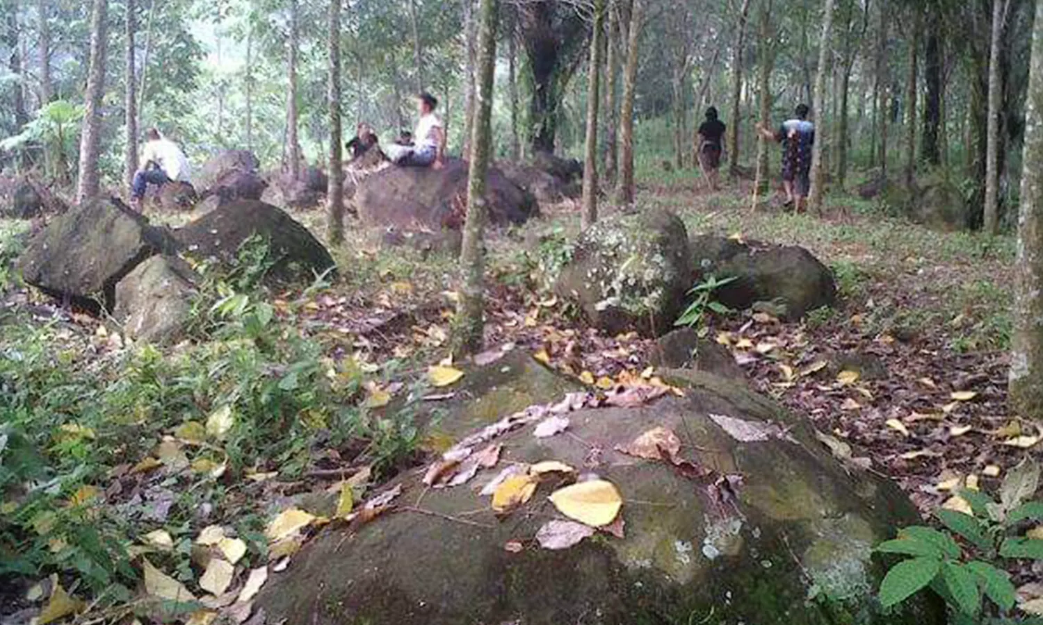 Punden berundak yang ditemukan Sultan itu berupa batu tersusun bertingkat dan membentuk sebuah pola yang ditemukan di sekitar perkebunan karet.