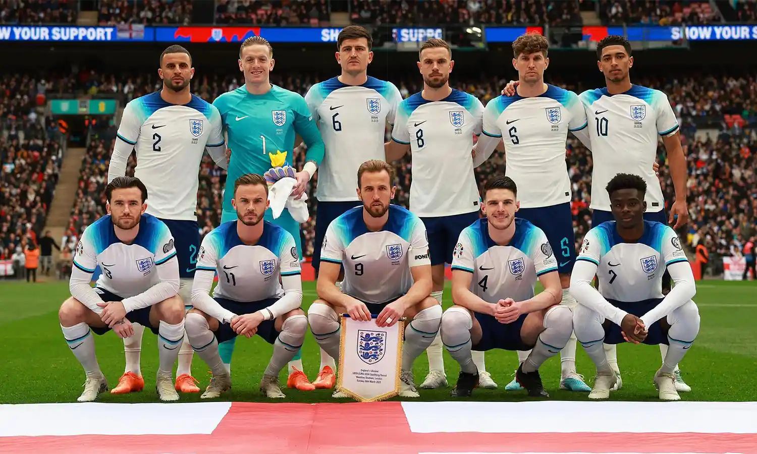 - Inggris (4-3-3): Jordan Pickford; Kylie Walker, Harry Maguire, John Stones, Ben Chilwell; Jordan Henderson, James Maddison, Declan Rice; Bukayo Saka, Jude Bellingham, Harry Kane