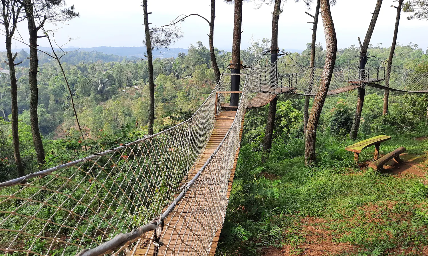 Tapi, yang paling banyak menjadi incaran wisatawan adalah spot foto berupa jembatan gantung. Kamu bisa merasakan sensasi melewati jembatan gantung yang berada di ketinggian.