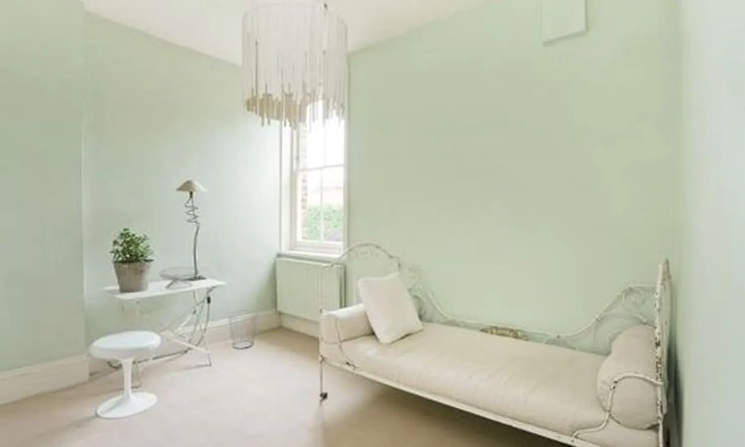 Kamu dapat menggabungkan warna cat hijau sage ini dengan dekorasi berwarna cokelat khas kayu, warna putih untuk tempat tidur, atau warna hitam pada lantai untuk membuatnya terlihat lebih menawan dan aesthetic.